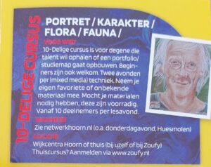 !!Bij wijkcentrum de Huesmolen 61 Hoorn is momenteel plaats bij de cursus Portret Karakter Flora Fauna. Donderdagavonden start vroeg om 19:00 tot 21:15!!