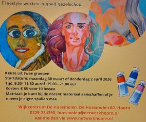 in acrylverf, voel hoe het is te schilderen met professionele kwaliteit acrylverf en in het middagprogramma vanaf 13:00 gaan we met de verfijningen bezig.